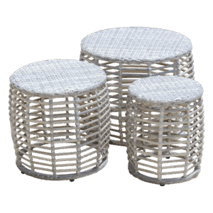 Elegante, resistente y funcional. El set de mesas Pattaya, en colores gris o taupe, es ideal para complementar cualquier espacio exterior con estilo contemporáneo y durabilidad.
