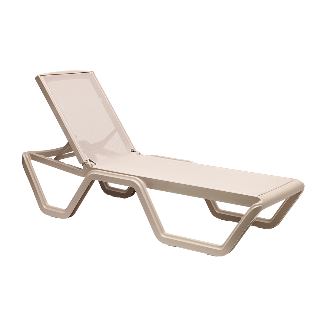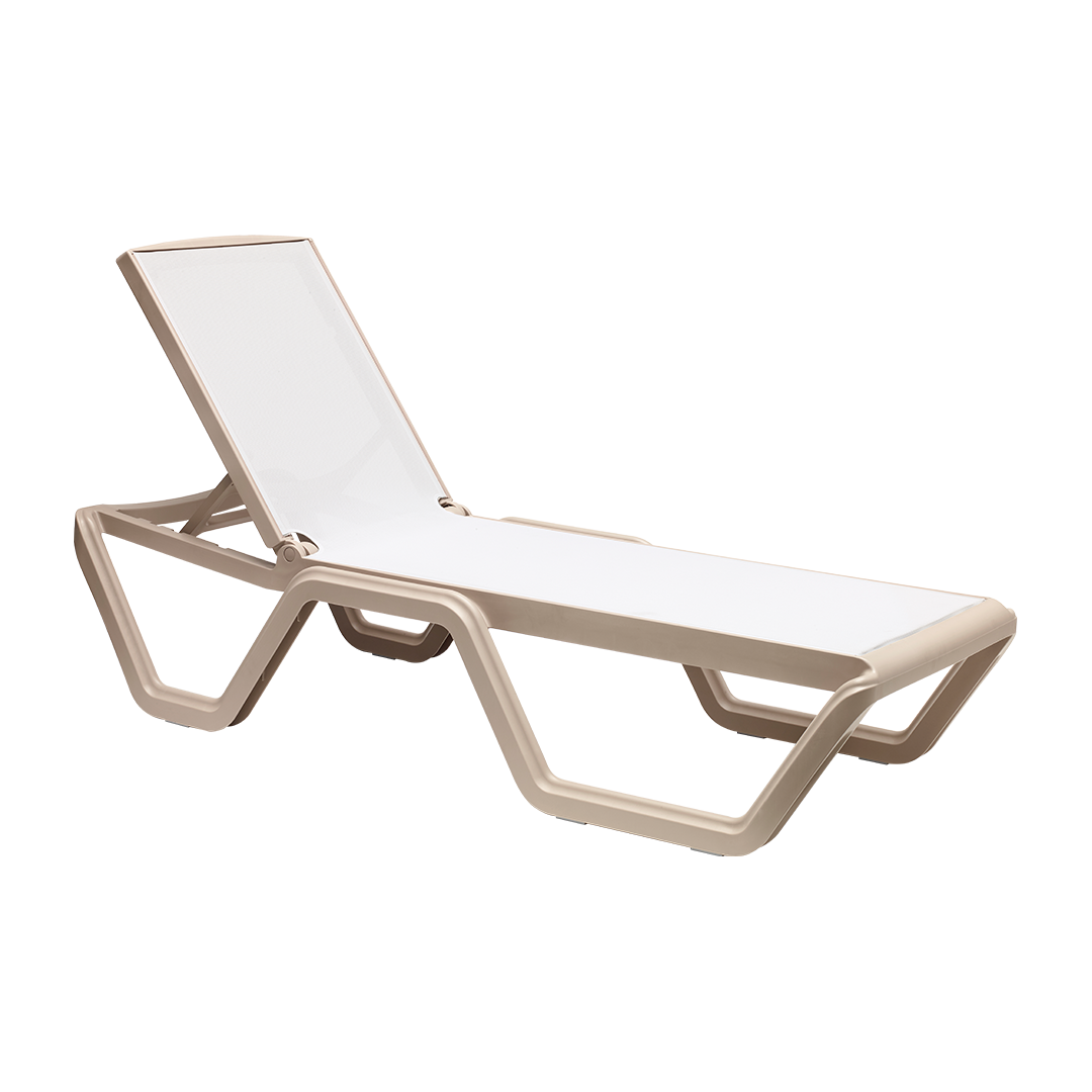 Su diseño ergonómico se adapta al cuerpo, ofreciendo una postura cómoda y relajada perfecta para tomar el sol, leer o descansar. La estructura de Venecia es resistente al agua, al sol y a los cambios de clima, lo que la convierte en una opción confiable para uso prolongado en exteriores. Su superficie es fácil de limpiar, lo que facilita el mantenimiento diario.