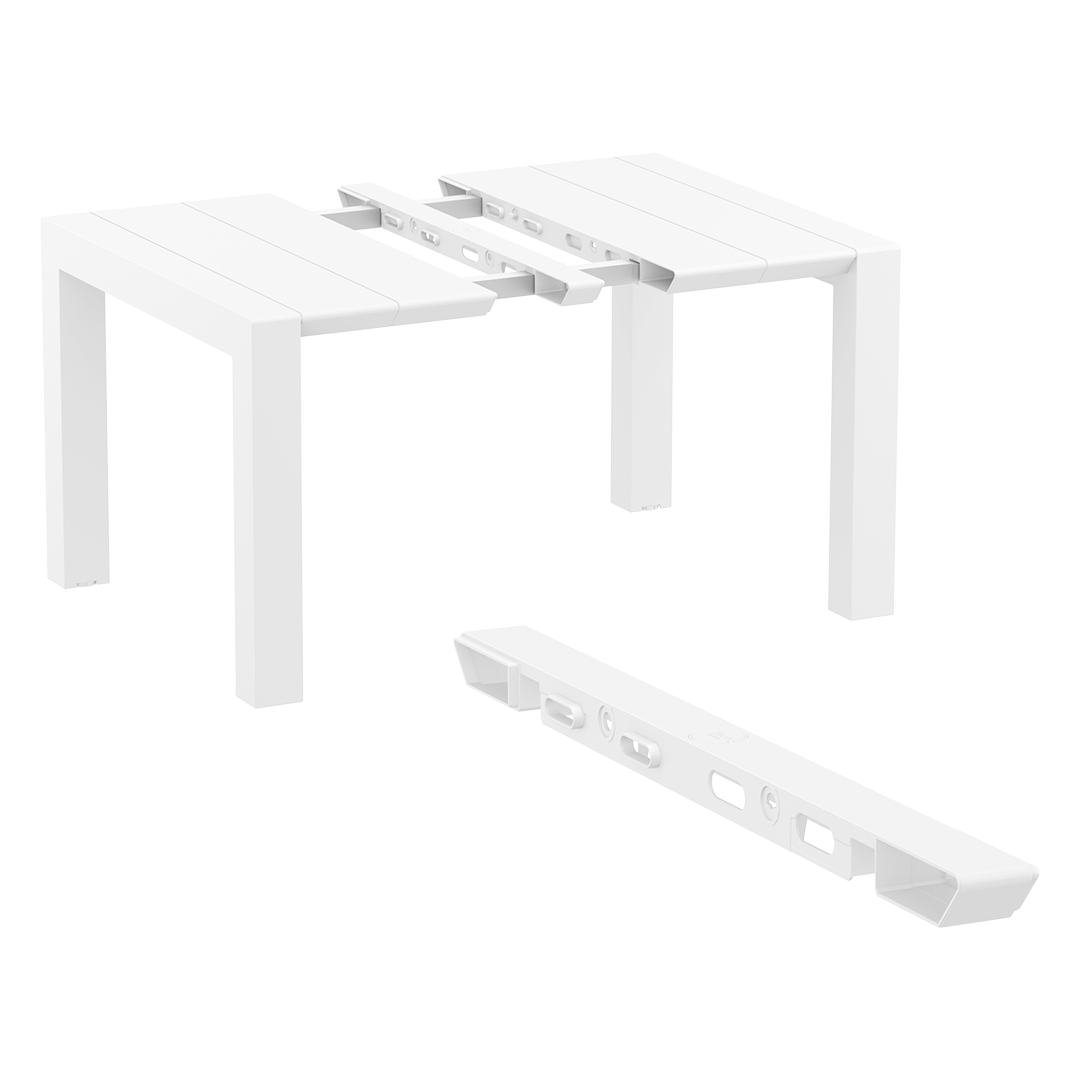 Práctica, elegante y adaptable. La mesa Napoli, disponible en blanco, negro y taupe, es extensible y cuenta con apertura central para sombrilla. Ideal para disfrutar al aire libre con comodidad y estilo.