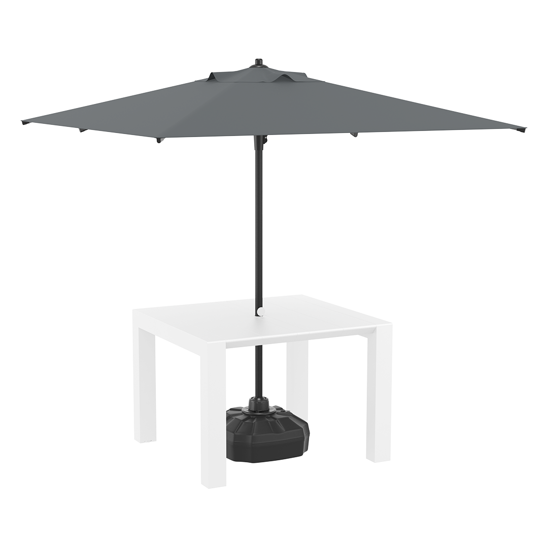 Uno de sus grandes atributos es su sistema extensible, que permite ampliar su capacidad de forma sencilla y rápida, ideal para reuniones con más invitados o para aprovechar mejor el espacio según la ocasión. Además, incluye una apertura central diseñada especialmente para colocar una sombrilla, lo que añade sombra y confort en los días soleados, sin necesidad de perforaciones adicionales.