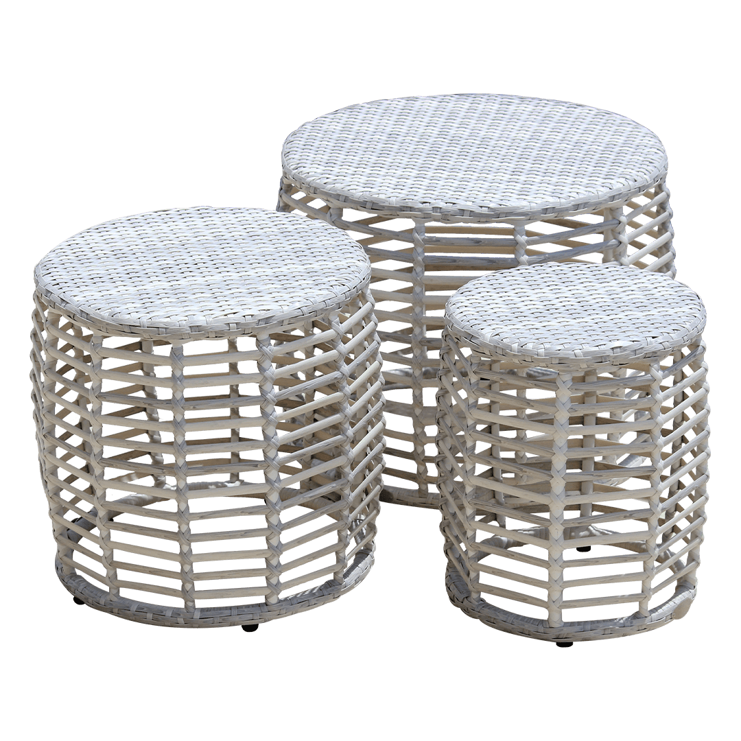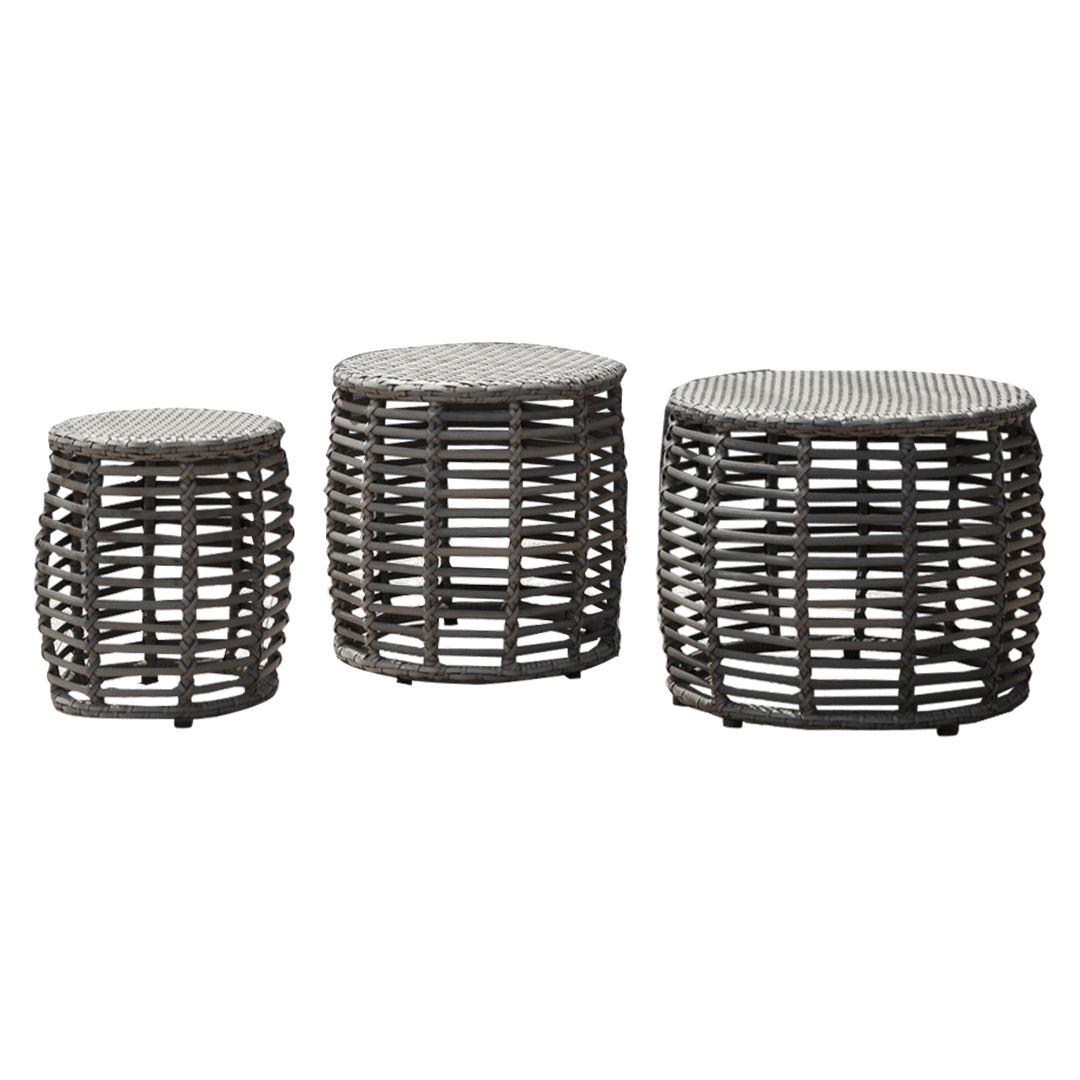 Elegante, resistente y funcional. El set de mesas Pattaya, en colores gris o taupe, es ideal para complementar cualquier espacio exterior con estilo contemporáneo y durabilidad.