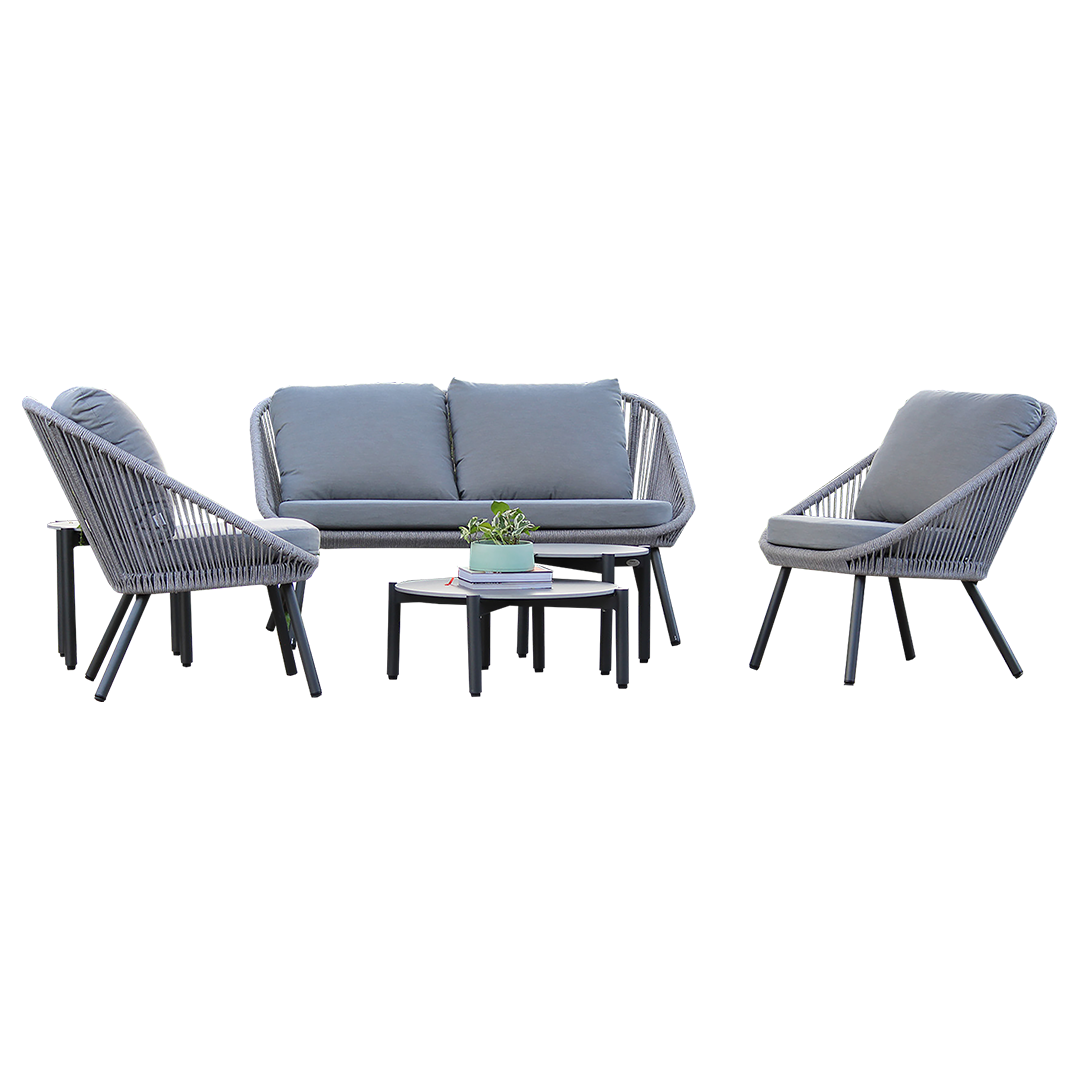 La Sala Génova es una propuesta contemporánea y funcional para transformar tu espacio exterior en una zona de descanso sofisticada y acogedora. Su diseño combina líneas limpias, estructura robusta y materiales resistentes, pensados para brindar estilo y durabilidad en terrazas, patios, jardines o balcones.